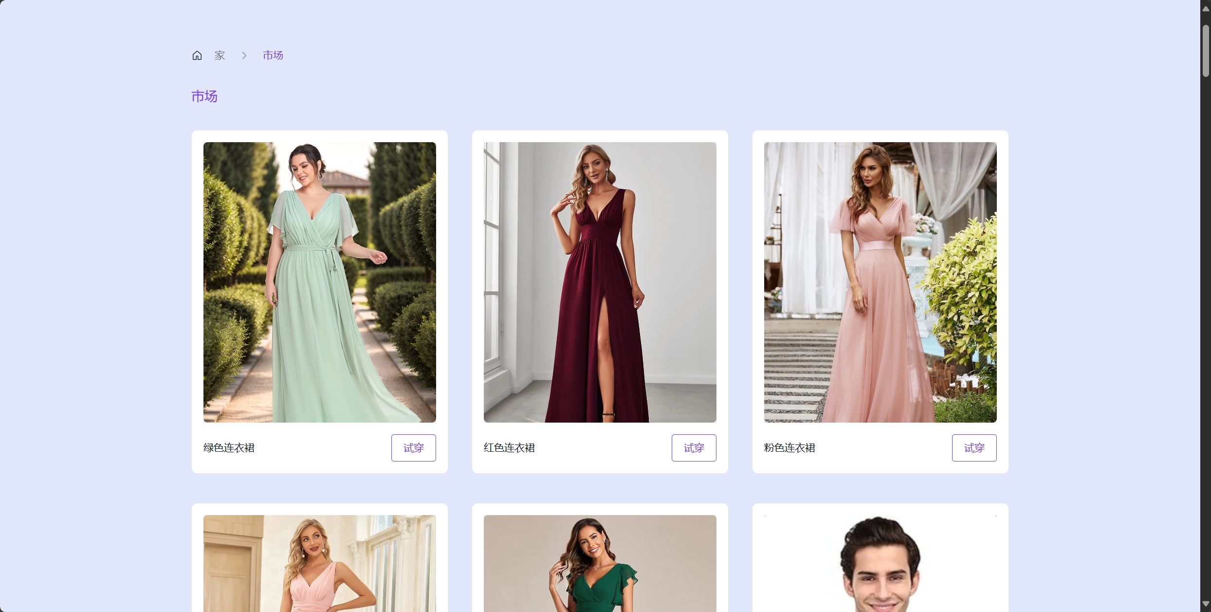 虚拟试衣功能:用户可以通过上传自己的照片或选择虚拟模特进行试穿不同款式的服装,包括上衣、裤子、裙子等,以便用户更直观地看到服装在自己身上的效果。