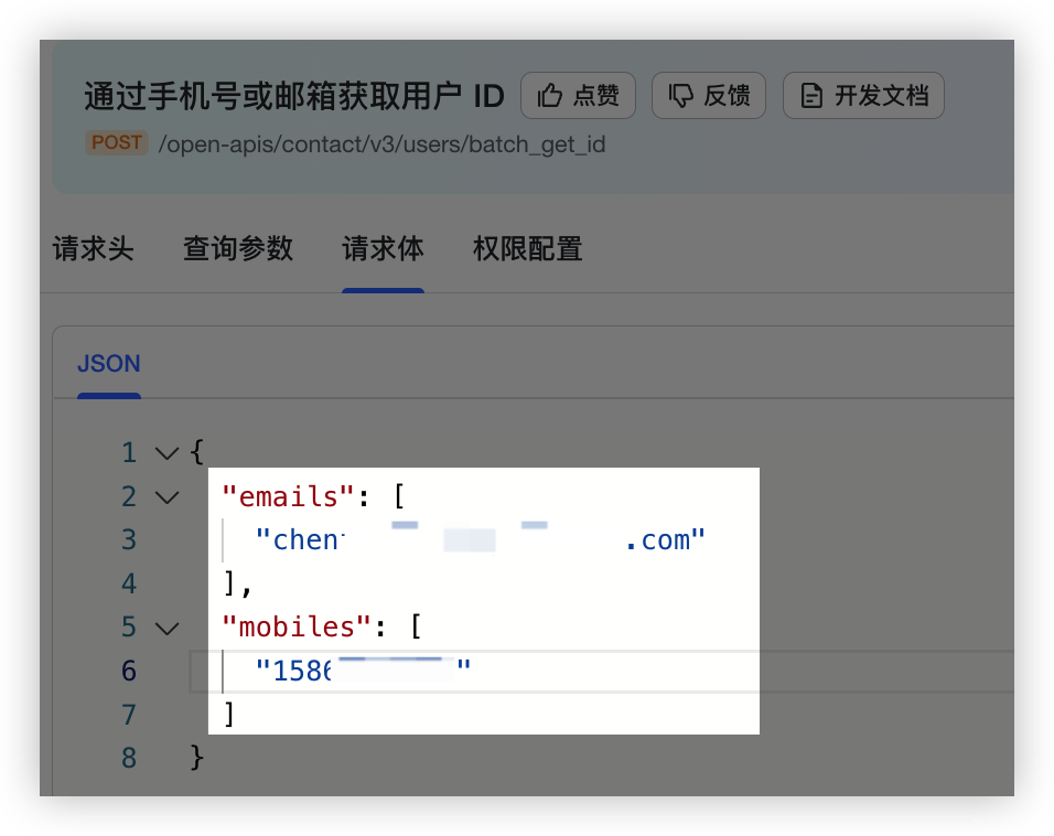 +字段权限要求 | **注意事项**:该接口返回体中存在下列敏感字段,仅当开启对应的权限后才会返回;如果无需获取这些字段,则不建议申请<br>获取用户 user ID(contact:user.employee_id:readonly)